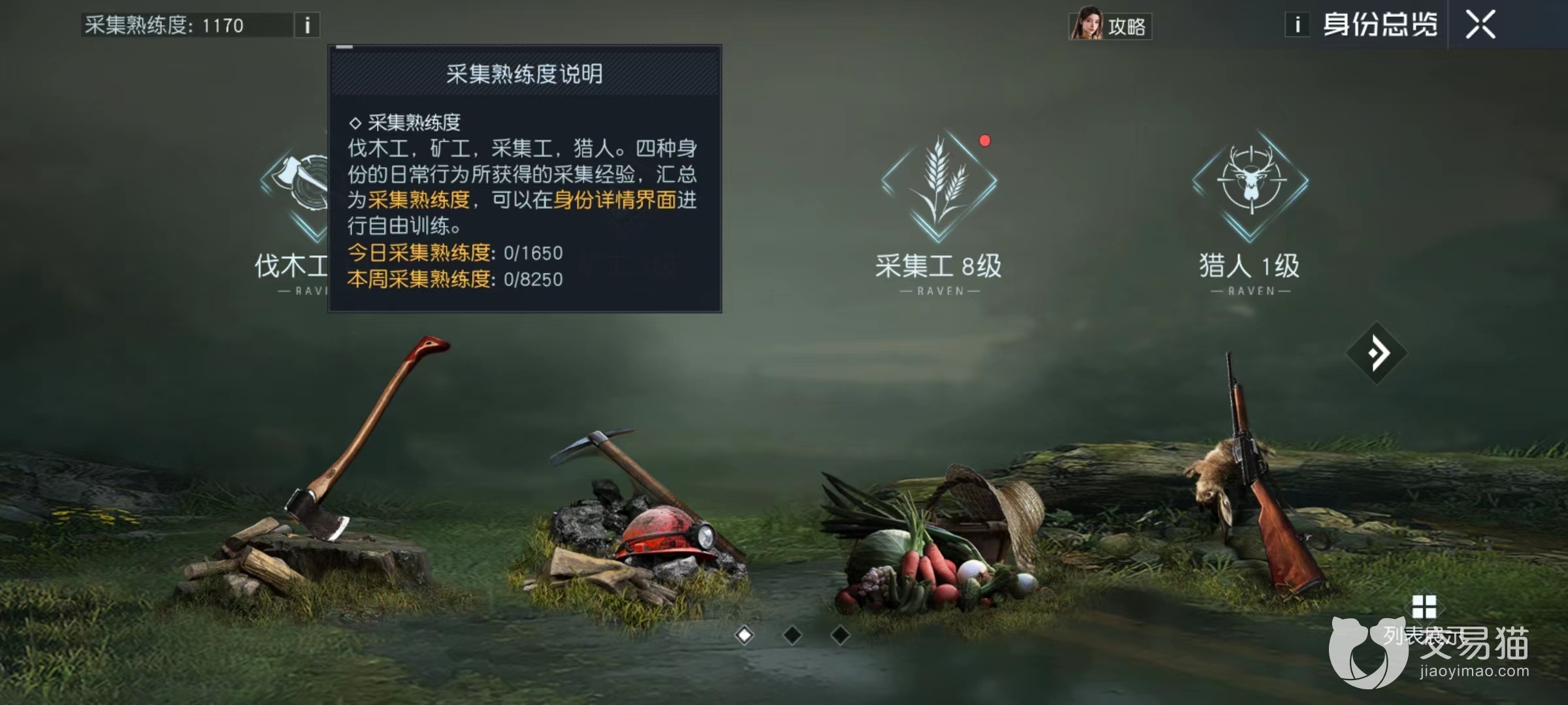 当然采集熟练度并不能够同时为四种职业升级,小伙伴们每次升级的时候只能选择一种职业,毕竟每天采集熟练度是有上限的,只有1650点,所以选择合适的职业升级是相当重要的。