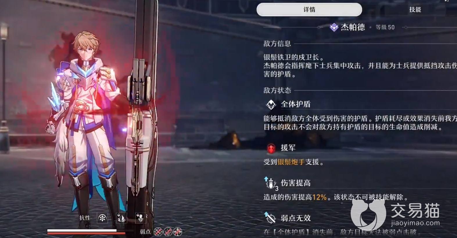 这里的最终boss是五十级的杰帕德,特点是携带大炮并且附近会一直有两个士兵协助他作战,并且这个角色在护盾没有被击碎之前,基本上无法攻击他的弱点,大家不要优先集火这个角色可以慢慢的消耗,先将两边的士兵击败然后主力集火他。