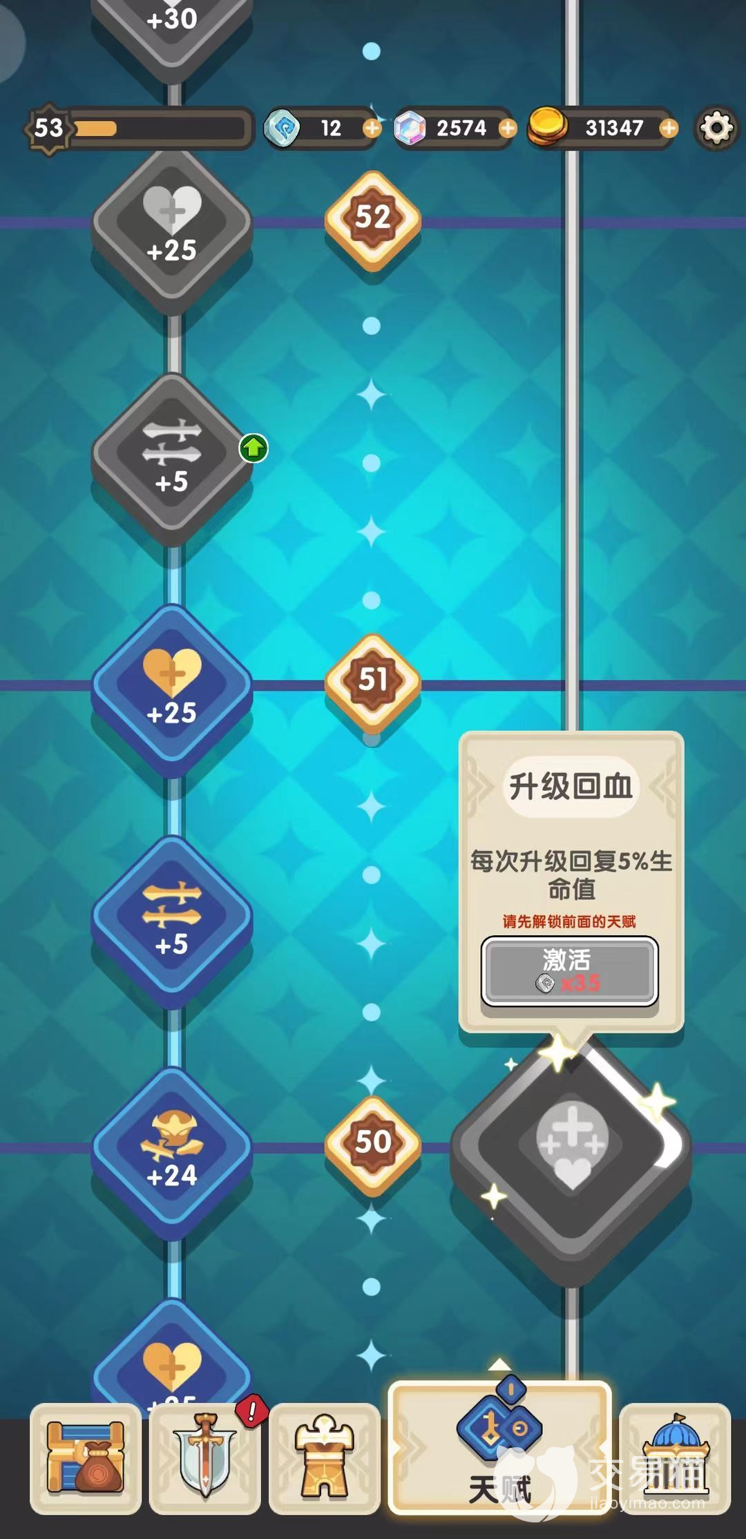 接下来我们就是要切换到天赋体系了,大家都看到最下栏的主页面右侧的那个就是天赋体系了。当我们点进去到天赋体系的时候,我们会觉得它的页面看起来好像是硬生生地被分为了两大类型,其实这只是从基础数据以及战斗时的增益综合性的提升了我们进场时的状态。所以说我们要时刻关注着装备和天赋体系的状况,一旦可以优化了第一时间就进行优化,这样可以立刻提升我们的战斗能力。