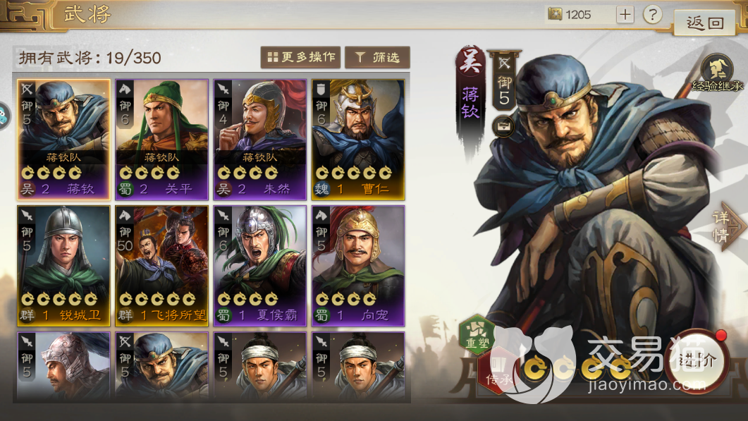 最后就是因为紫将的升阶上面,是需要通样的武将卡牌来进行升阶的,所以要是大家在抽卡的时候抽到了重复的卡片,可以将卡片留下来为武将升阶,这种升阶模式要比橙将升阶地方模式省钱很多,毕竟紫将的抽中几率要比橙将大。
