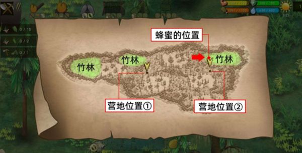 大家可以先看一下这张地图,沼泽是一个类似于一个向左倾倒的山峰形状的地图,它的最左边尖尖的位置是竹林,然后向上看,还有两片竹林,一个在居中的位置,还有一个在最右上角的位置,而右上角的这片竹林里面有很多的蜜蜂,也是蜂蜜的采集地,所以大家在游戏前期可以先将营地设到这片竹林的下面,以及中间那片竹林的下面,是在这两个位置的话,获取资源都会方便很多。再来到这片沼泽之后,大家可以先去制作斧头,再去做竹竿套索,接着做木锄,然后是石刀,竹叉,弓,箭,还有驱虫剂,骨针,炮竹这三个大家可以选择性制作一下,它的作用并不是很大,但是也是有用的,驱虫剂的作用是防止角色被蚊虫叮咬,而骨针能缝补衣服,而炮竹的话能赶走野兽,若是资源充足的情况下,可以去制作。
