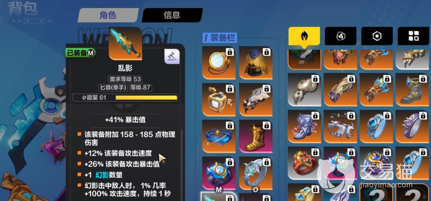 头盔使用“法师镜片”,这件装备的最大特点是可以将对施法速度的增减适用于攻击速度,非常好用的一个技能。然后这套BD的核心装备来了,那就是“幽咽无光法袍”,它是我们站撸的核心装,提升获得聚能祝福的效率并且在消耗的时候有额外伤害。项链这一块手游用户推荐用技巧魔盒,这样可以减少手动技能释放的频率,会自动攻击。如果是电脑端的用户则推荐用焰光护符。手套携带“混沌深渊”,腰带用“无限”,词条“内外兼修”,获取更高的施法速度转攻击速度。鞋子使用“仲裁者”,各种属性抗性,如果有条件的话最好有额外的灵动祝福(移速加成)。戒指用“深渊”,重点是附加3%的3种异常状态;另一个用“世界流转”,有攻击和施法速度加成,相当于攻击速度翻倍了。武器用“乱影”,看中幻影数量提升,主手武器额外获得1个,副手武器额外获得2个,还是很棒的。