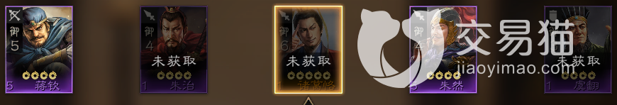 这是一套开荒使其的紫卡阵容,如果你在很早的时候就抽到诸葛恪,那么可以利用这一套来过渡前期,蒋钦也是可以挂上群体灼烧的,之后朱然再根据灼烧降低一层统率,诸葛恪此时找准目标即可进行单体秒杀。朱治的话也可以补一些AOE,而且还能清除敌人身上的buff,虞翻则单纯负责兵力的回复,降低战损。