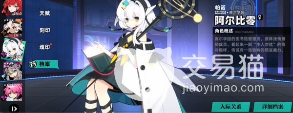 她是一个超能属性的女性角色,一技能叫做法则预言,可以使敌人单体一回合以内减少一个强化效果,二技能叫做法则速清,当角色受到攻击的时候,可以将攻击得这名敌人的弱化状态,减少一个回合,大招叫做法则回溯,可以直接将己方所有队友的攻击带来一定程度的提升,并且解除两个弱化状态,若是完成该步操作的话,还能对该队友的攻击再带来一次额外的上升,该效果持续一个回合。