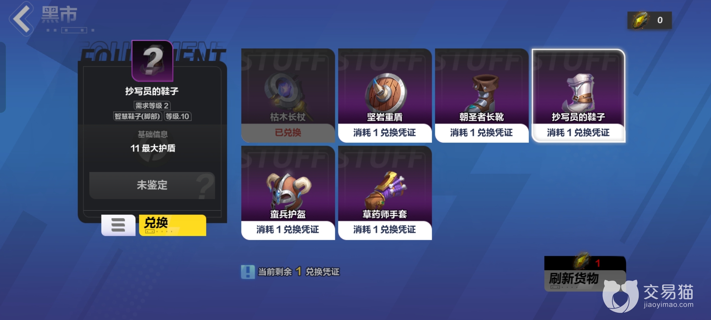 这个商人的紫色装备非常的多,但是领取完之后玩家可以使用黑晶来刷新这个商人,重新获取选择的机会,并且这个道具也是可以依靠刷怪掉落。