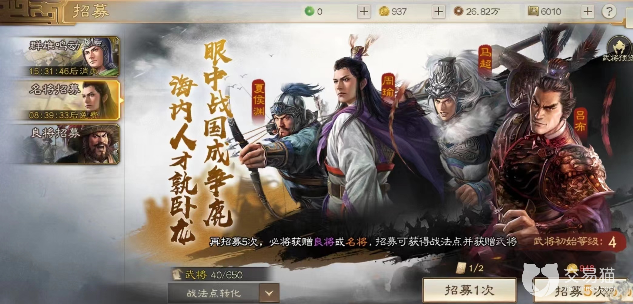 首先大家要是想在游戏里面去查看所有武将相关的图鉴的话,只需要去参加招募活动就行了,无论是参加哪一个项目,在那里都会看到武将图鉴的这个界面,只需要点击进去,就可以看到所在的武将池里面的所有角色,然后就可以开启武将图鉴的查询了,还有另外一个方式就是玩家可以通过尚书台这个功能,尚书台可以看作是我们现实生活当中的智能客服,玩家只需要把你想要知道的武将名称给输入进去,就可以查询到相关信息了。
