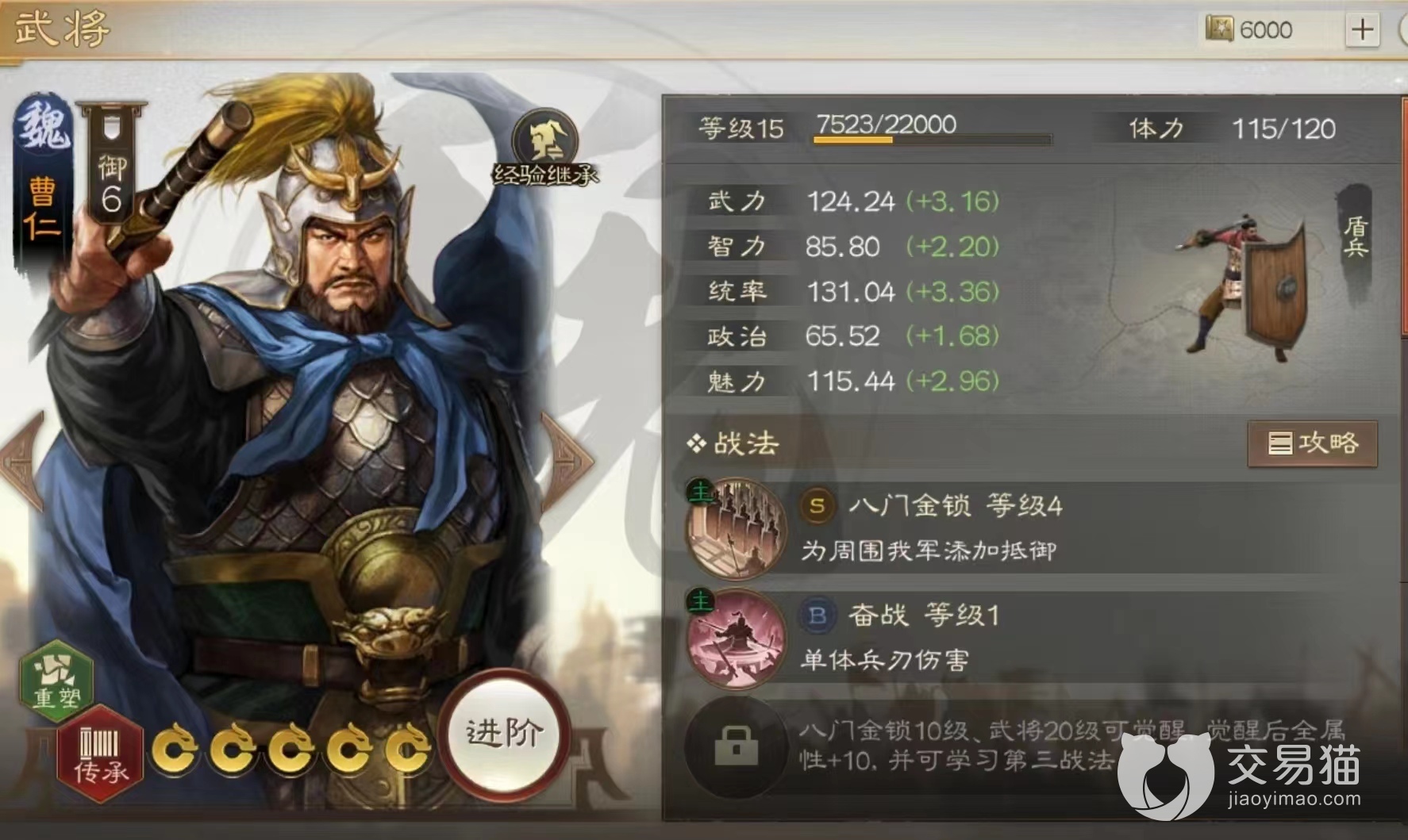 而且玩家在这里面查看到的所有信息是跟你获取这个武将之后得到的信息是一模一样的,这些信息内容会有兵种、属性以及自身所带战法的技能和效果,而这些信息对于新手玩家来说很有可能会忽略掉,但是要是想了解一个武将,那么这些信息就是必须知道的,先来说一下兵种,当玩家查看到这个武将所属的兵种那么大概就会知道他的定位是什么样的了,因为这些兵种包括盾兵、枪兵,骑兵、弓兵等等,这四个兵种都各自有各自的特点,其中的枪兵,就是整体输出比较高,骑兵的话,那就是他们的移动速度相对来说比较高。