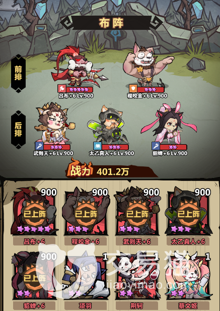 然后再放一个吕布作为输出使用,但是既然想让做一个主貂蝉的队伍,那么我们就得想办法提升它的输出,这时候就可以用上武则天和太乙真人了。