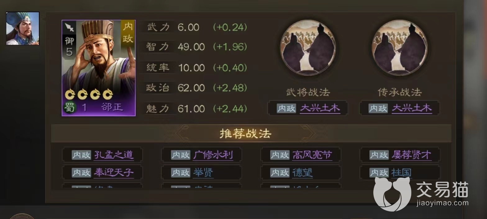 这款游戏的战法分很多个类别,兵刃、谋略、文武等一般用于战争直接增强伤害效果,辅助治疗等也适用于战争场景,一般通过增强自身或降低敌方属性来增加伤害。除了这些战斗战法以外还有一种特殊内政战法,这种内政战法特点用于主城建设,需要搭配内政将领适用,本期小编要介绍的潜身远祸战法就属于内政战法。