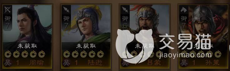 3、周瑜+吕蒙+孙策+小乔+陆逊。
