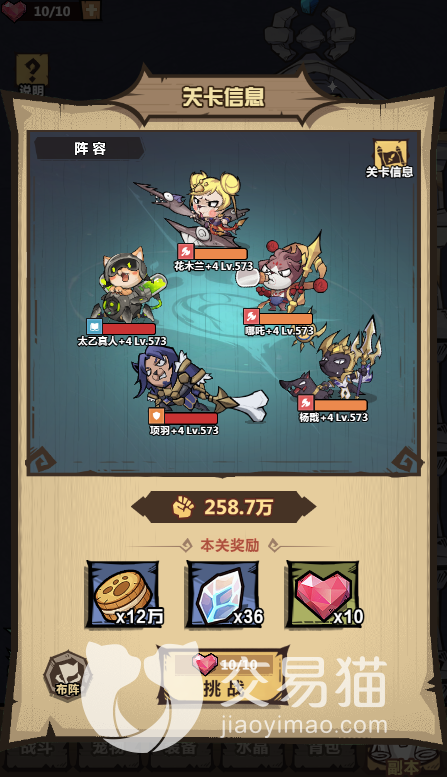 首先我们要成功通关139关来到这里,然后点开140层并查看它的信息在这里我们可以看到对面的阵容了,前排是太乙真人和项羽,后排则是花木兰、哪吒和杨戬。