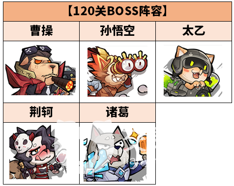 在阵容组合上,玩家们千万谨慎,选择诸葛亮、荆轲、曹操、太乙真人、孙悟空的组合。大家不要小看这一阵容,它特别针对120关BOSS设定。