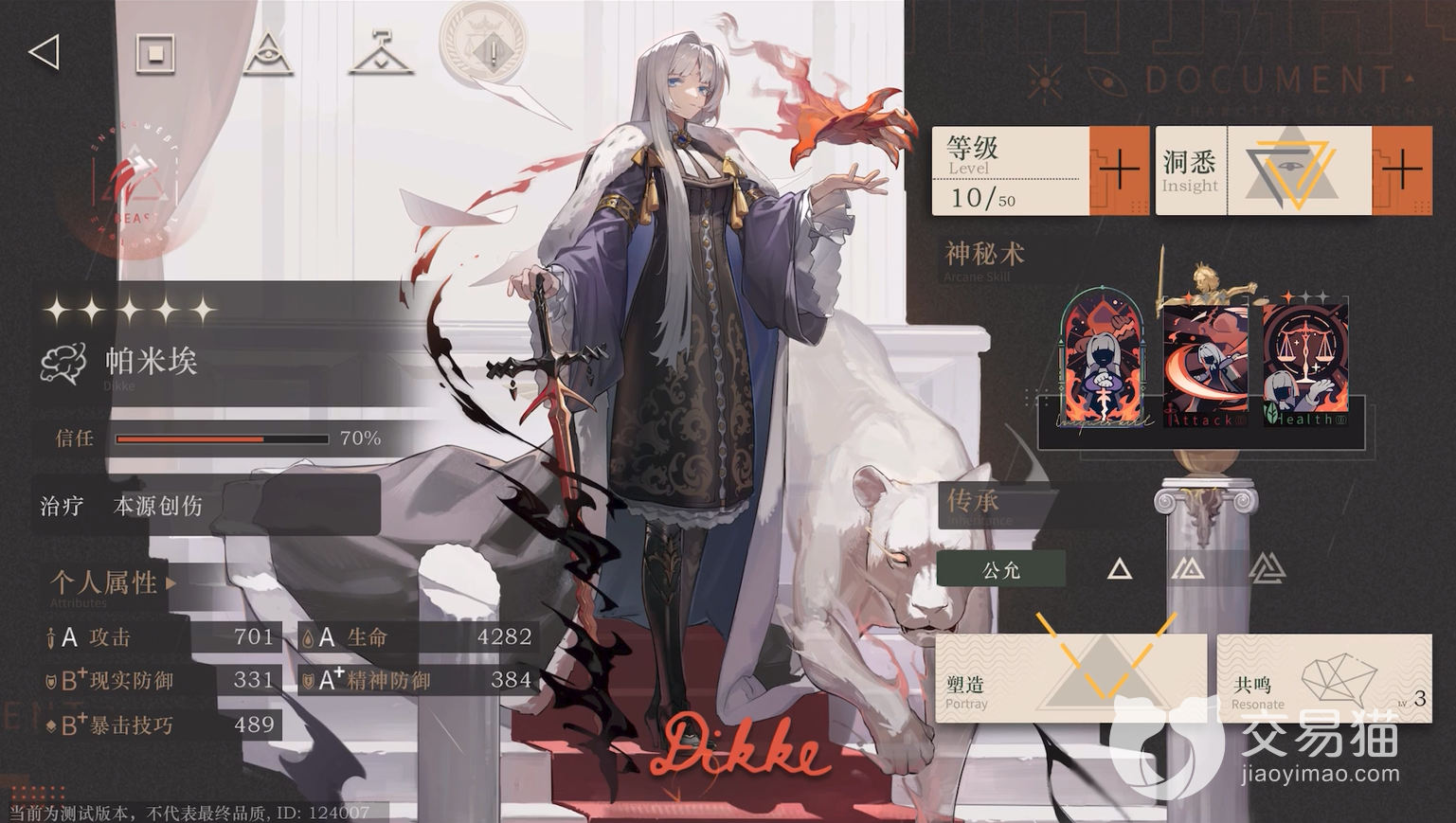 帕米埃:该角色在游戏内是五星角色,定位治疗和本源创伤,在实战中该角色的更加偏向辅助位置。神秘术【出格的判官】可以给敌人造成精神伤害,还会造成额外的本源创伤,也可以理解为真实伤害。【强权】可以对敌人造成精神创伤。【正义】该技能就是一个群体回复技能。可以说是新手玩家续航必备角色之一。