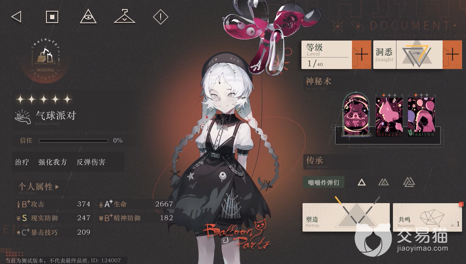 气球派对:该角色拥有游戏内少有的标签—伤害反弹,除此之外,还有治疗和强化的能力。神秘术【好孩子】属于群伤技能,并且给全体队友叠加减伤效果。【皮纳塔塔】属于单体技能,在一定条件下可以无视防御。【咳咳怪人】该技能属于一个群体治疗技能。