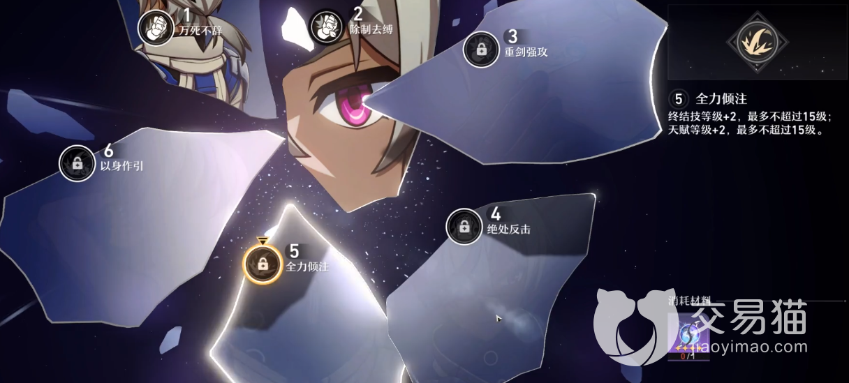 1星效果是解锁万死不辞技能,低HP值也可释放战技,最低锁血为1,大大放松了战技的使用限制。2星战技造成的伤害提升,并且解除自身一个debuff。4星免死金牌,触发一次名刀,并且立刻回复四分之一的HP,单局战斗触发一次。3星以及5星效果是提升技能的等级,6星以身作引,血量低于一半时,大招伤害提升2成,而且群攻的溅射伤不减半。