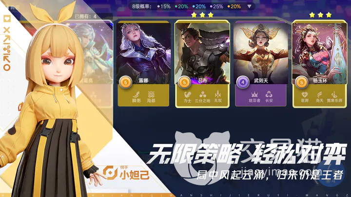 这个其实就是王者荣耀为原型打造出的自走棋手游,但是里面不论是背景还是玩法都是全新的内容,让各位可以进行一次新的尝试。其实这个在王者里面之前就有对应的玩法了,不过进行体验的人也许并不多。