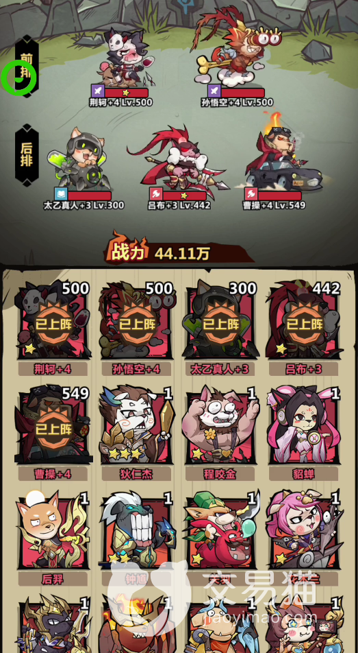 本阵容由荆轲,悟空,太乙,吕布,曹操组成。算是一个非常不错的输出战士为主的阵容组合,两个战士,两个刺客,配上一个辅助的配合。能完全应付的了绝大多数关卡,甚至于后期练度越高,伤害越高,其阵容的组合也更加具有高容错率,是一个越到后期越强的阵容。