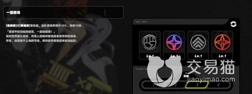 这个天赋就叫做一起燃烧,是个很好用的增益天赋。当安东在释放大招或者组合技之后,就可以瞬间提升整个队伍的暴击率,高达10%,并持续性存在15秒。所以当你的队伍里有其他主席的时候,就可以用他的大招来抵挡敌人的伤害,然后再为其他角色增加暴击率。是个非常好用的辅助性天赋,这让他能够作为主C或者副C来使用。