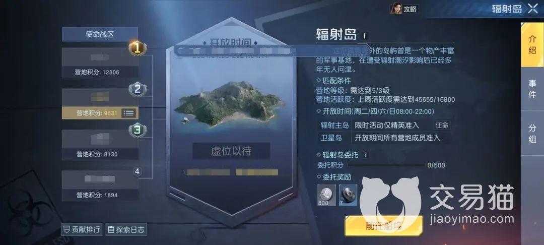 2、之所以这么说是因为辐射岛是四个营地之间的一场战斗,他们所比较的是分值。这个分值的构成分为了杀个阶段,分别是日常事件(辐射岛委托)、周四事件(辐射岛污染体)、周六事件(辐射岛物资车)。