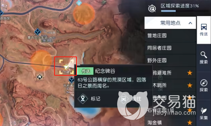 3、肉类资源采集点:传送到环谷控掘场。然后移动到小湖泊哪里,围绕着这个小湖转一转,可以看到都是成群的动物,而且这附近棉类矿类资源也不少。