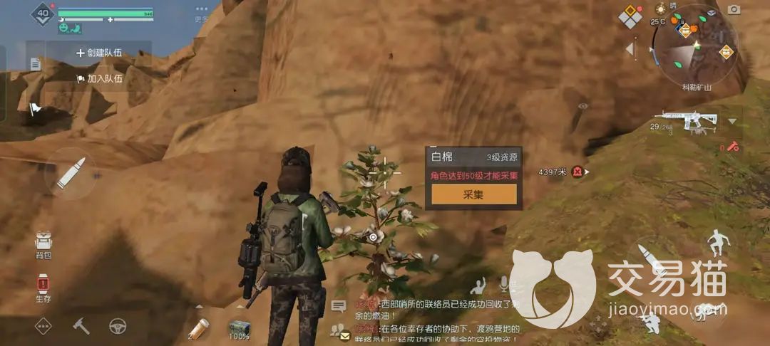 4、棉类资源采集点:传送到淘金矿这里,然后一路边上这条公路走下去,可以看到路两边有不少的棉类资源。到公路尽头,这里同样也有一片内类资源集中区。