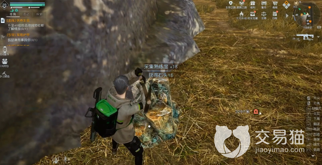 3、还可以来到格伦火车站门口,这里四周分布了大量石头。可以说是每走几步就能够遇到一个,在游戏中的小地图上的这类型标记就都是“石头”,很容易就能够分辨的出来。而木头则是在“维罗农场”的附近,传送到维罗农场后,在路牌的左手边会有这一大片的樱花树,在这里木头可以说是应有尽有了。而动物的主要聚集地,肯定都是在有水源的地方了。在地图中的农贸市场面前会有一个大河,河边有些一整排的鳄鱼以及牛之类的动物,如果玩家比较缺肉或者是兽皮等物资的话,那么可以到这里来进行采集。最后的一种材料是“草木纤维”了,这个东西的产出是非常的多的。想要快速获取的话,到西部哨所面前的位置就能采集到一大堆。
