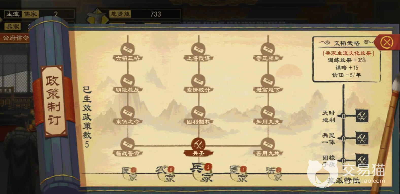 玩家在大周列国志开局之后,需要先更换我们想要玩的流派,我们确定儒家之后进行更改,但是更改流派的话是需要一定的君威的,玩家需要达到六十君威再行更改,这样会更加的稳定。