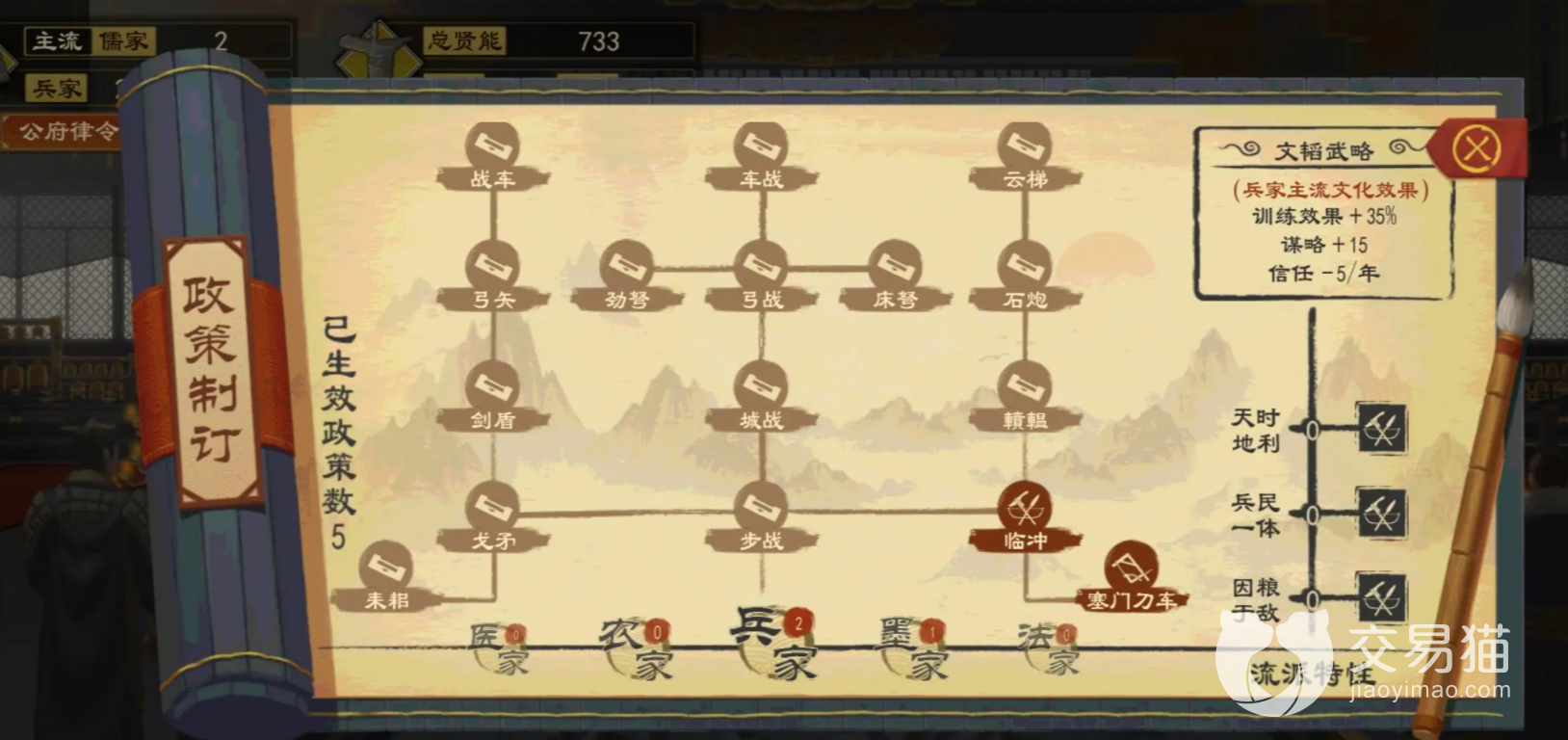 当自己的君威达到一定属性之后,我们就可以去朝堂上进行颁布政策,这个时候在朝堂上一定要将文化全部点满,因为儒家学说注重的就是文化的培养。