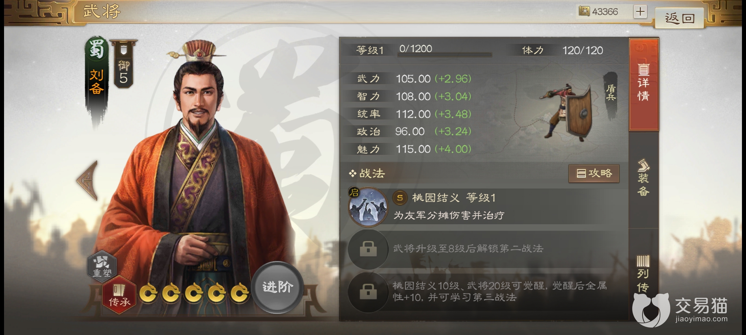装备方面小编建议给刘备配备增长智力的武器,刘备的主要战法加成受智力这个属性影响,上述搭配战法的治疗率免伤率等也跟智力有关,在培养武将这个方面一定要定位明确,走治疗辅助路线就全加在智力上,避免选择什么兵刃类的战法来分散这个属性加成,其他装备也是选择加成统率和智力。