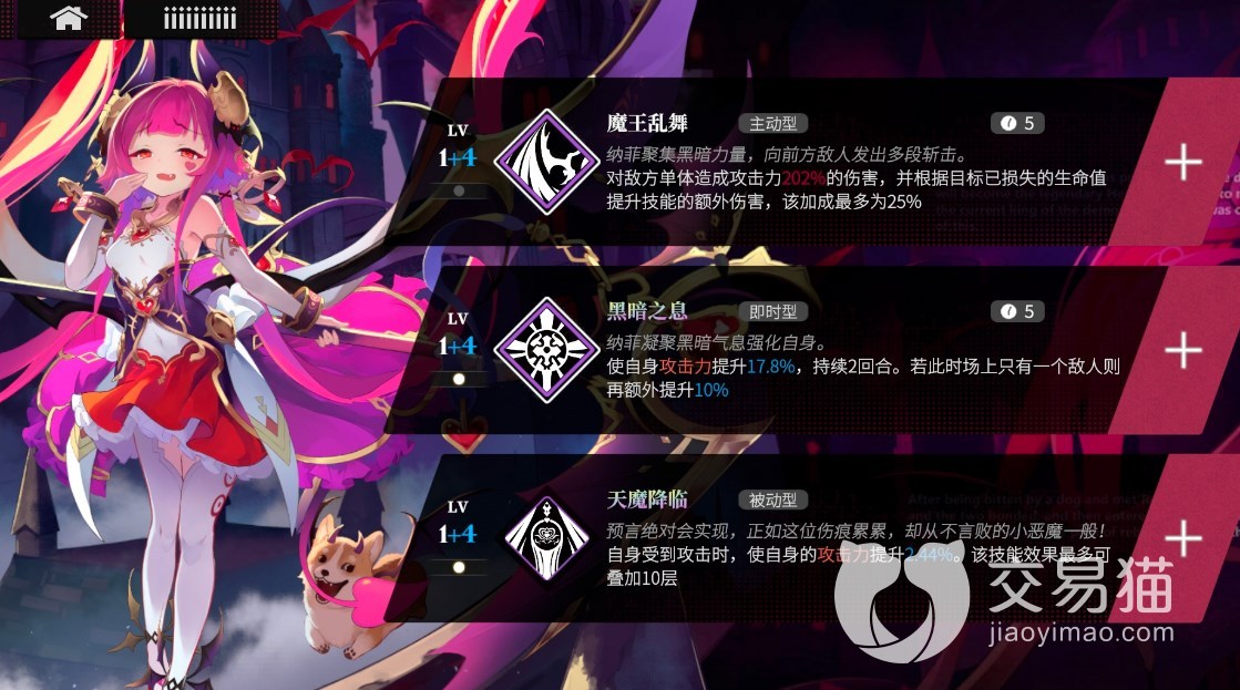 还有一个是纳菲,大家熟悉的雌小鬼,在4星的卡里面爆发不错,特别是1技能的倍率很高并且能根据敌方已损失的生命值来附加最多25%的额外伤害,并且这个技能在满突破之后会附带一个侵蚀的效果,因此放进侵蚀队里提供一些单体输出也未尝不可。