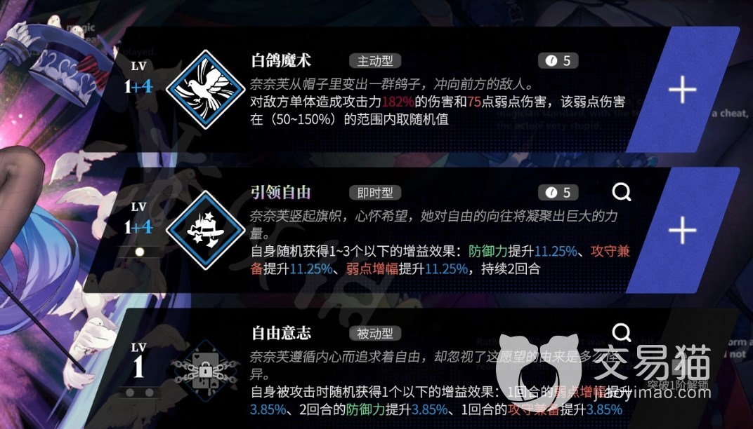 奈奈芙,单体伤害加弱点伤害,弱点伤害会在一个区间浮动,技能能够提供随机增益,自己被攻击的时候能提高自己坦度和弱点伤害能力,坦度和输出都还不错,而且只有3星,前期培养也比较容易。