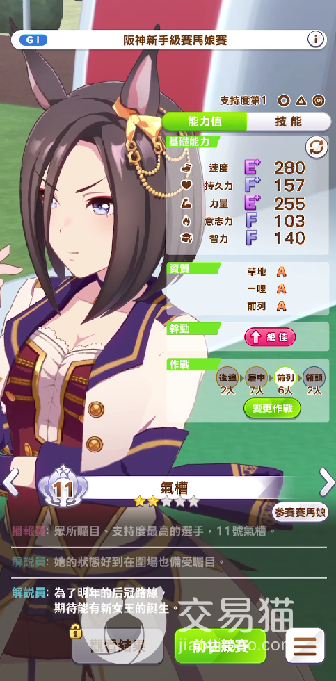 刷取这个奖励的阪神新手级比赛,基本上是每个玩家们前期出道以后,可以在比赛界面找到的初期比赛,虽然名字是g1比赛,但整体难度并不算大,可以说是含金量较小的记忆比赛了,只要角色们本身的练度足够,还是很容易能刷的到的。