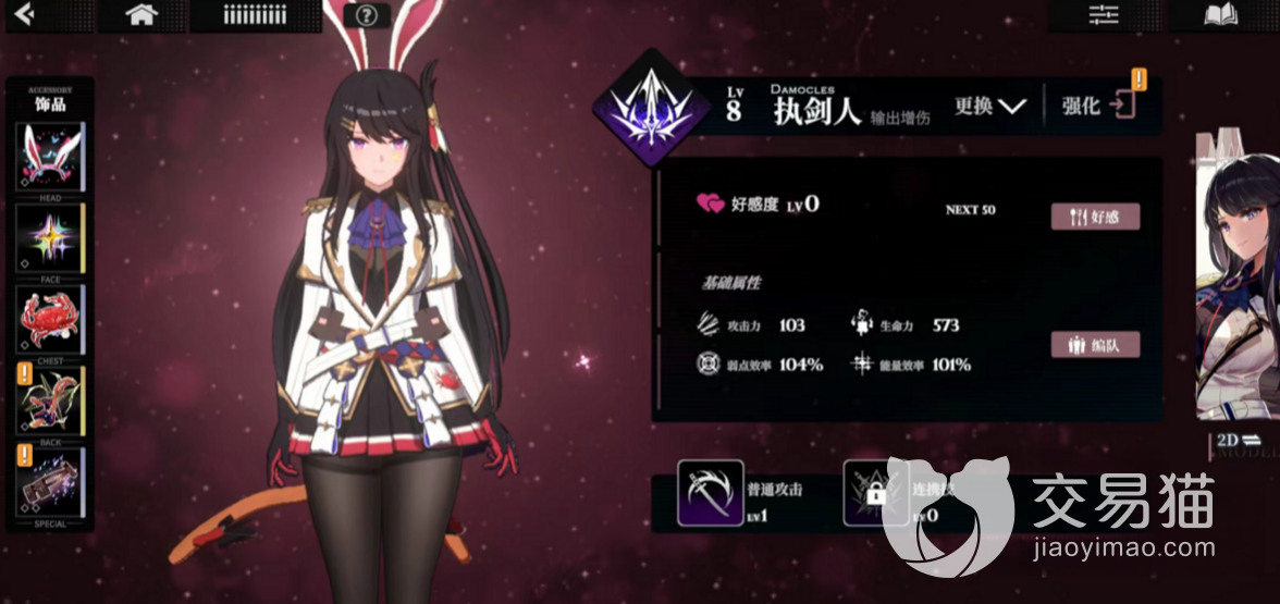 关于属性的选择,黑神月咏可以直接用执剑人,挑选了之后,对于输出增伤是非常有利的,而且在攻击的时候,会比较有逼迫感。能让黑神月咏的弱点和能量效率直接超乎想象。这个角色的平A可对敌人造成很高的伤害,最高更是达到了216%,还有一定几率将自身的攻击效果额外提升。她的奥义技能,就有一个特别美的名字,叫琉花笼月夜。不仅能带来高搭760%的伤害,还能为队友提升攻击效果。