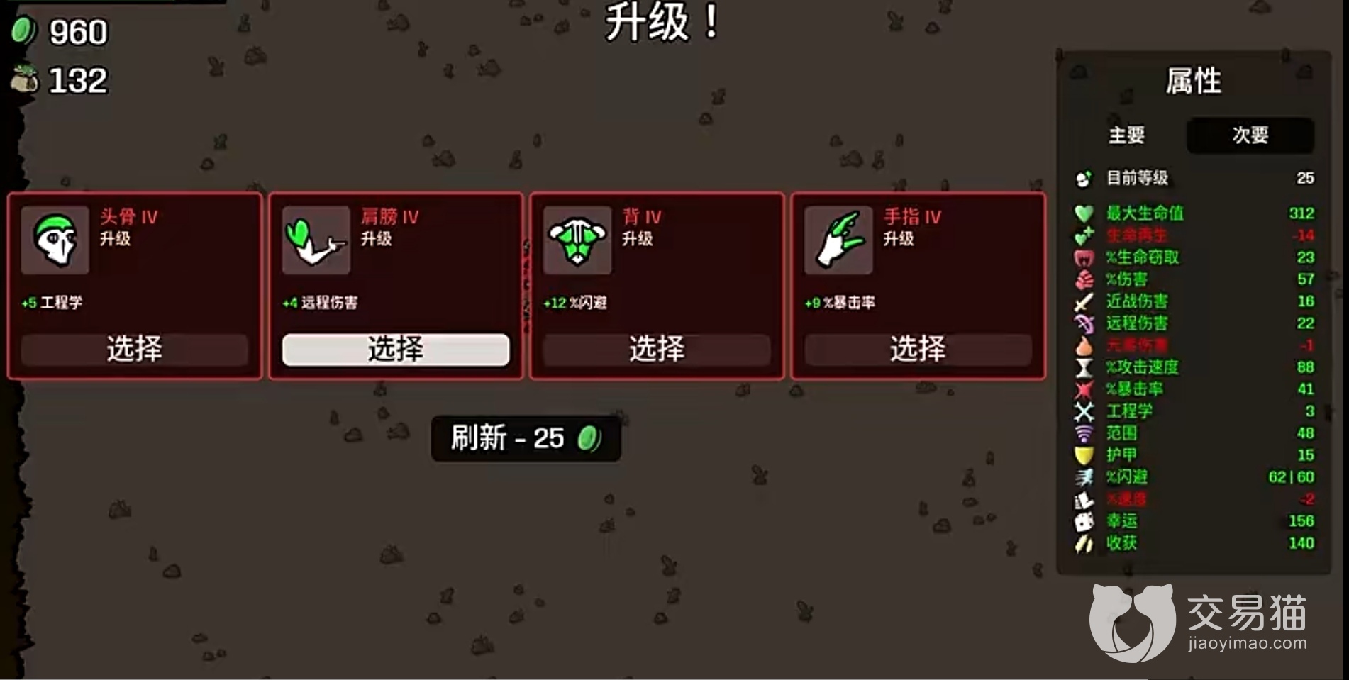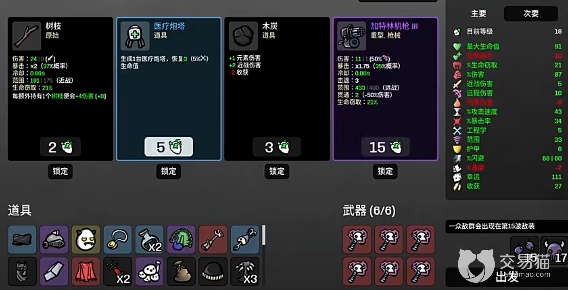 前五波的战斗中,天赋要首选生命值,血厚是绝对的王道,接着可以把攻速、收获和远程伤害等属性依次点满,而暴击、移动速度和幸运值这些属性可以慢慢来,不急。