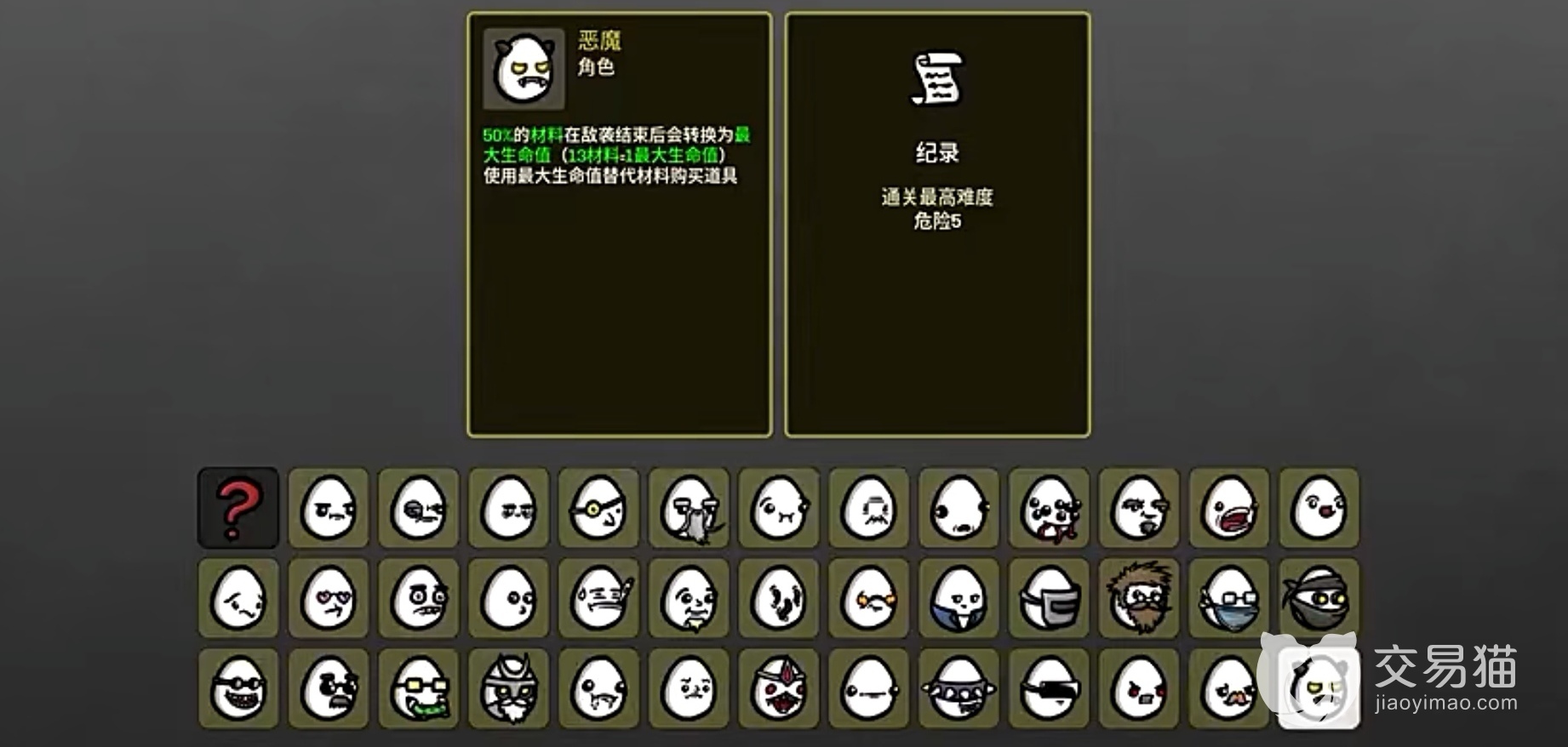 这名角色在游戏里是以“卖血”著称的,它可以用自己的生命值来换取武器与属性的增益,从而领先于其它的敌人,实际上,恶魔的能力就是能把自己拥有的一半材料,在敌方的攻击结束后,转换成自己的血量,这也是它可以用血来换材料的原因,因为这两样东西可以互相转换。