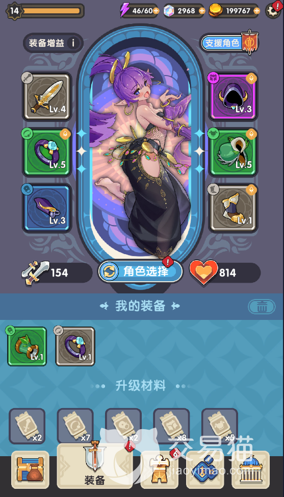 冒险者在页面中选择装备,即可展示出目前英雄角色的所有装备信息。在装备中包括已经穿戴的和空闲的装备。