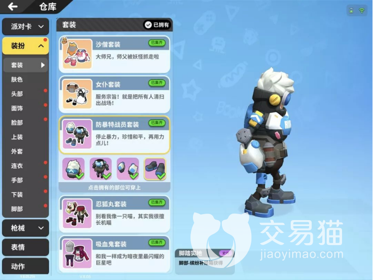 每一个角色都拥有非常多华丽的服装,每一个赛季都会推出不同皮肤,这些服装可以花费金币进行购买,同时也能够利用服装碎片进行兑换,能够让自己的香肠成为最炫酷的香肠。