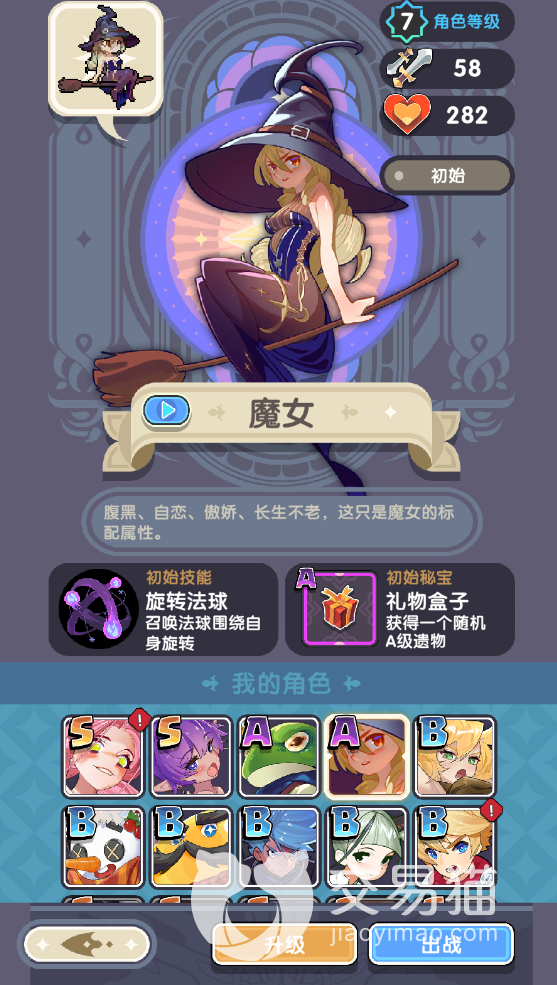 第三个推荐的是魔女,此魔女处于A级,他的旋转法球萦绕自身,可以让自己在一定范围内免受敌人伤害的同时提升自身的攻击力。适合新手使用,还可以在挑战中随机获得A级遗物。
