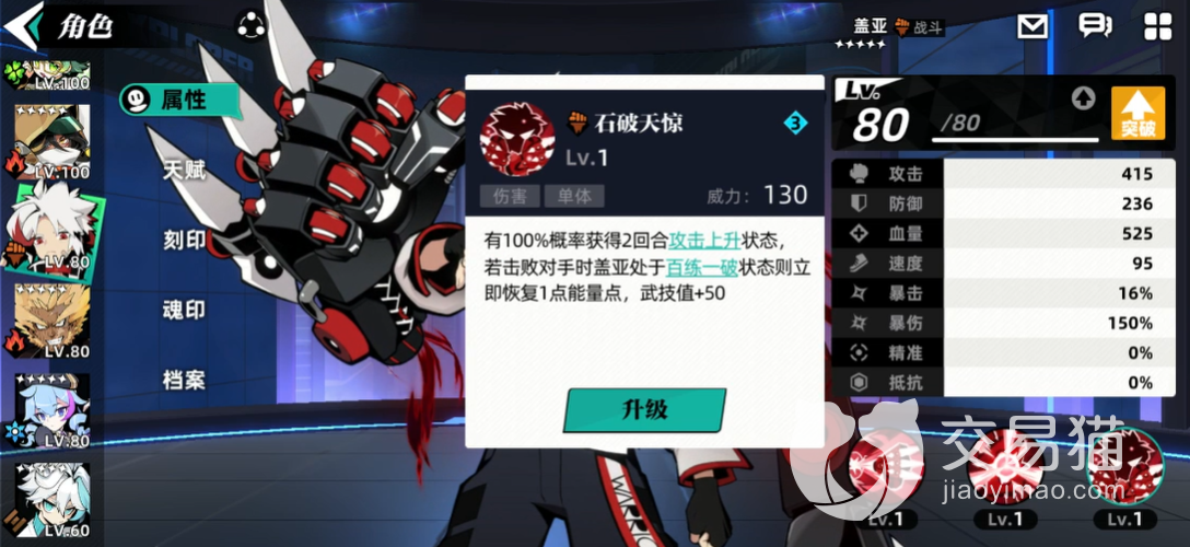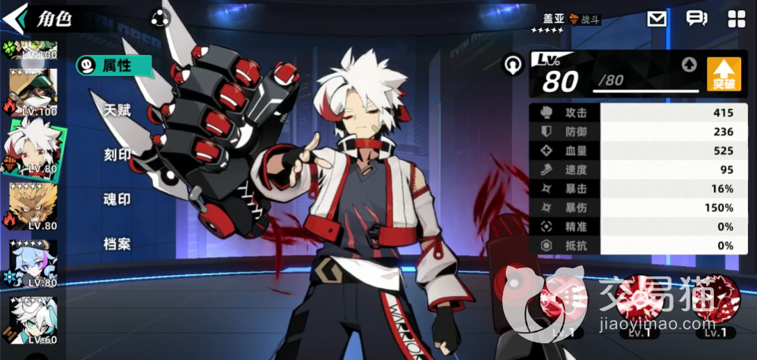盖亚这个角色的设定其实是一个热血少年,在游戏中也是作为战斗系的角色,所以在战力上面其实这个角色是可以的,他的一技能是破元闪,这个技能在游戏中其实是可以带来单体伤害的,有60%的几率可以让敌人的接下来两个回合中战斗力下降。