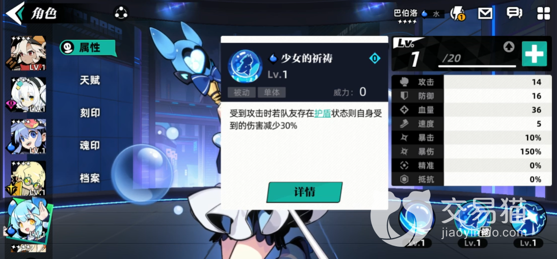 二技能少女的祈祷,这是一个被动技能,被触发的时候就是巴伯洛受到攻击的时候,这个时候要是旁边的队友正处于护盾保护期的时候,就可以减少自己受到的伤害,减少30%,数值也算是可以的了,不过这个技能后期没有办法升级。