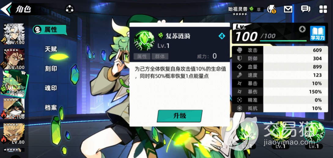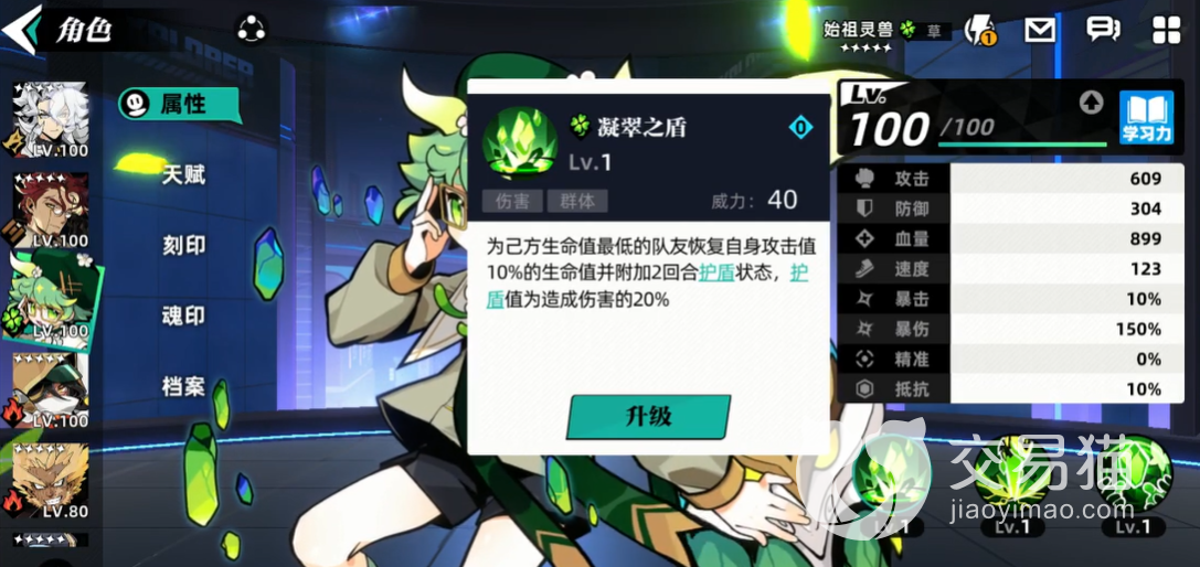 始祖灵兽是草系的一个角色,在外型上看来是毫无攻击能力的,要是大家用这个角色的话,绝对不能将它放在输出位,它的一技能是凝翠之盾,使用和这个技能的时候可以让群体都受到影响,为目前己方血量对敌的队友恢复攻击值20%的生命,而且还有持续两个回合的护盾可以使用,护盾的数值是始祖灵兽自己伤害的30%。