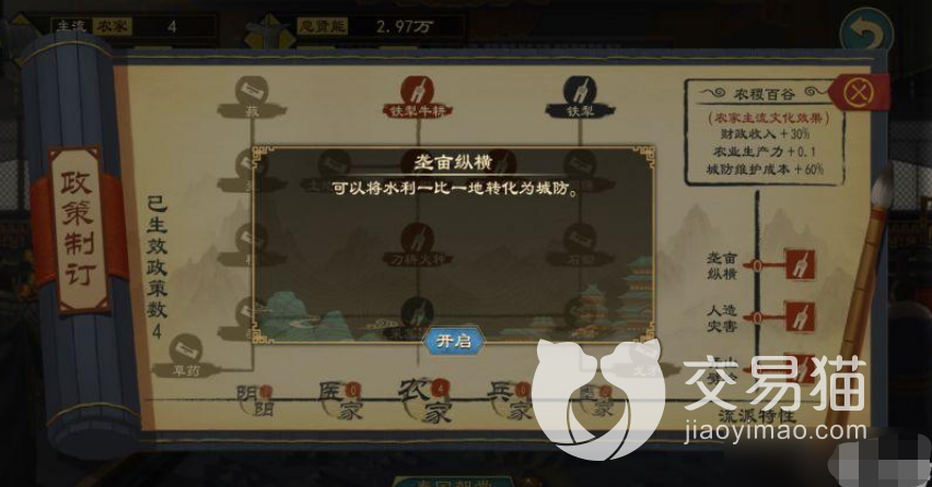然后就是政策,大家制定的政策最好是儒家政策,因为要是城池当中的叛心值过高,也会出现复国战乱等等情况,而儒家政策就是克制叛心的完美政策,使用这个政策每一年都会消除15点叛心哦,稳定值上升了复国叛乱自然就少了。