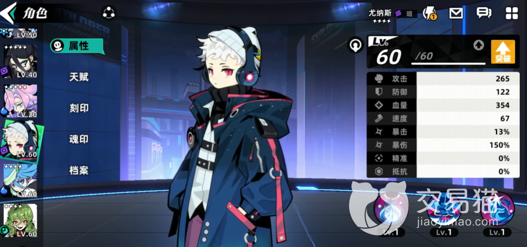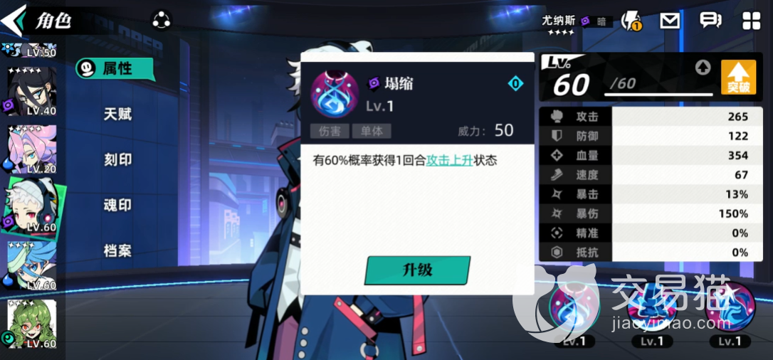 尤纳斯是少见的暗影系角色,他在游戏中的身份是比较神秘的,而且看起来非常的冷静孤独,使用的技能看起来不像是输出技能,在使用的时候大家可以看到一技能的效果是释放在单体队友或者是自己身上,使用了一技能坍塌之后,可以有80%的几率在后面的两个回合里面提升攻击能力。