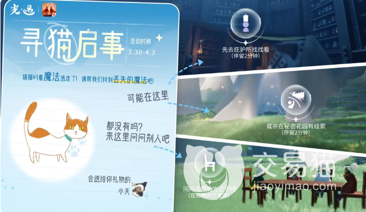 此外这次活动的任务是需要你们取寻找丢失的魔法,而这个的罪魁祸首是一只小猫,各位需要做的就是先到指定区域呆两分钟,然后再到云野和别的玩家进行讨论,这样就可以完成此项任务,并获取到对应的奖励了。