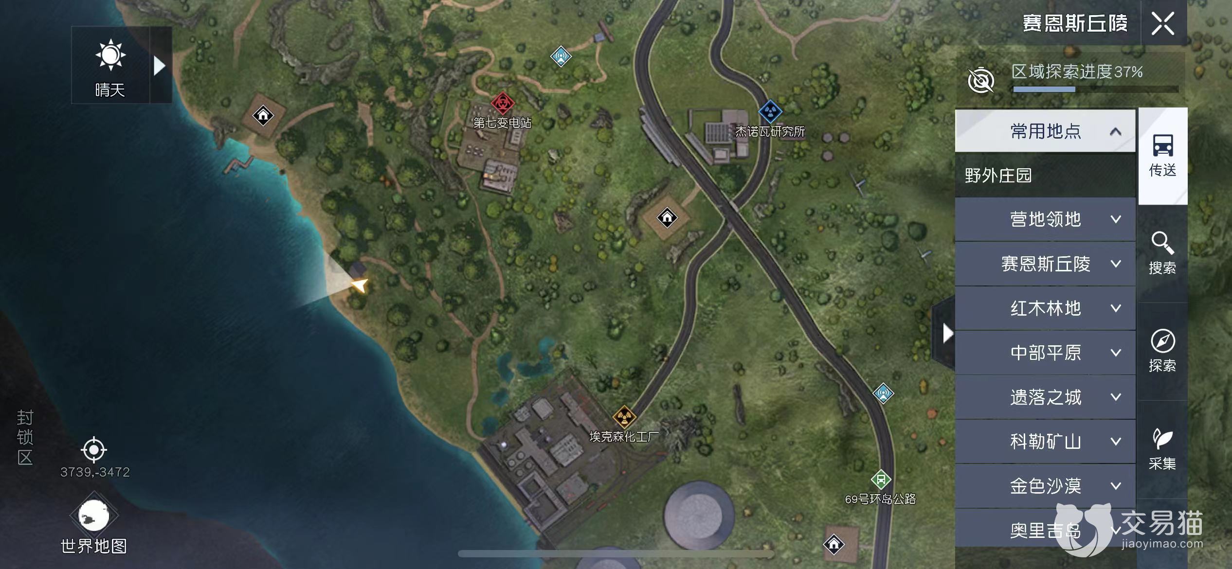 由于是在海边,所以到达埃森克化工厂后,直接沿着海岸线进行搜寻即可,最后锁定坐标3739,-3472海边小山坡的海景房处,注意这个地方会有感染者出现,需要注意不被感染者攻击。并且这里还有个小提示,可以根据左上角的箭头提示,搜寻到这里的隐藏的军械箱。