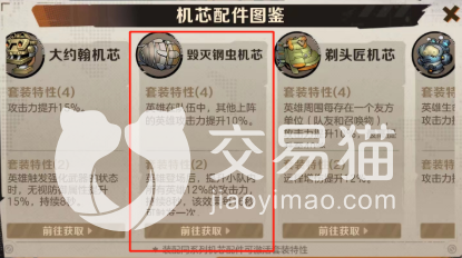 毁灭钢虫机芯:主供队伍增伤为主,两件套是在该英雄登场之后提供12%的攻击,四件则是只要在队伍当中就可以提升10%的伤害,想要队伍花费小精力就能够获得大量的攻击提升的话,该机芯是最合适的。