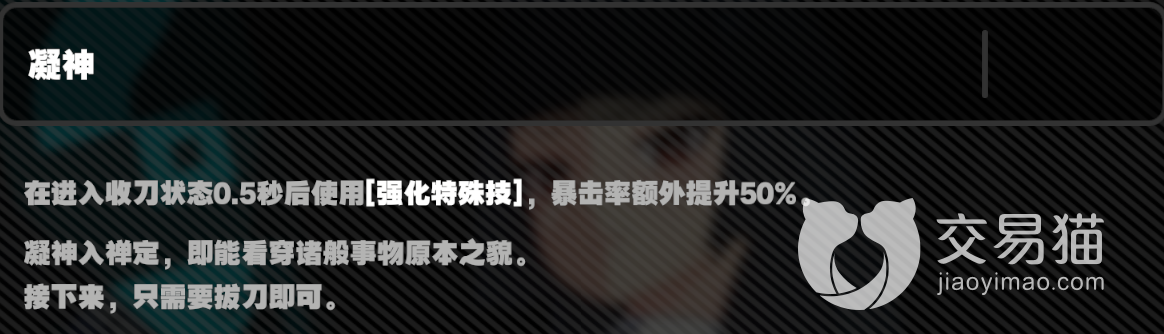 最后一个天赋肯定是最为重要的一个,收刀0.5秒的时间内增加50的暴击,也就是只要初始暴击数值在50以上就是第一刀一定触发暴击,并且该角色纳刀频繁,所以会玩的角色刀刀暴击也不是梦想。