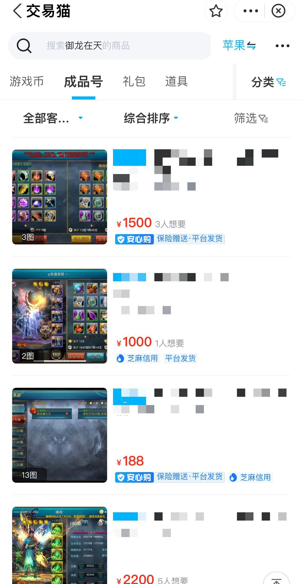 想要出售御龙在天小雪账号的伙伴,前期你可以通过小编提供的链接,将该app快速的安装到手机里边,如果对价格不了解的话,可以直接通过平台的搜索栏目找到对应的专区,看看其他卖家同款商品的定价,从而对自己的账号进行估值定价。心里有了大概的价格之后就是在申请栏目里边提交卖家需要的各种资料,通过审核之后你就可以开始上架自己的商品了。