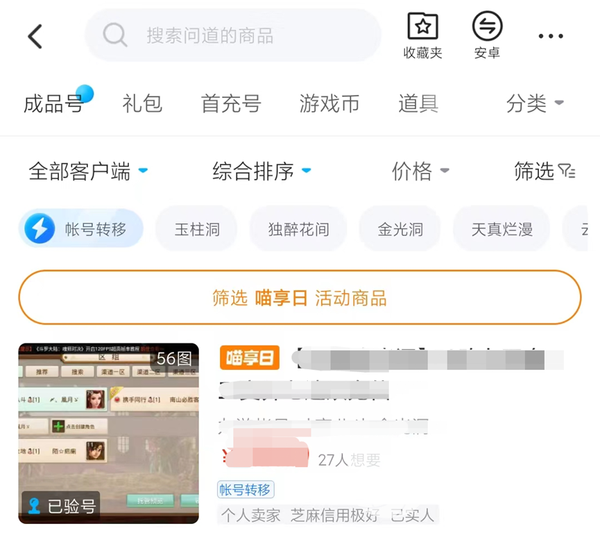 交易猫为想要用高性价比买的高端产品号的小伙伴们特别设置了特惠专区,大家可以在特惠专区内看到有很多游戏的高端号在优惠出售,每一天都会有新的游戏账号加入到这一个专区之内,小伙伴们可以进入专区内试试运气哦,说不定就捡漏到了非常值得购买的问道游戏账号呢。