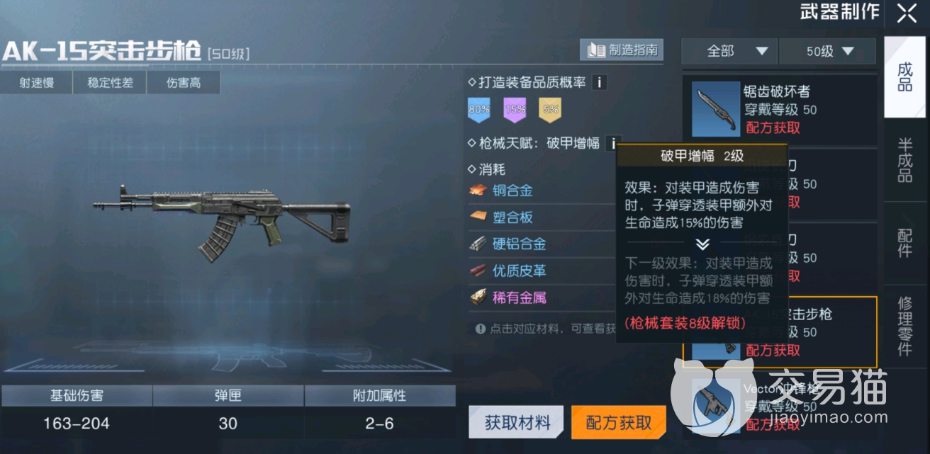 还有一把枪就是AK15这把枪,要是大家在游戏中要参与PVP玩法的话,那么这把枪是最合适的,它的天赋上带了对破甲的增幅伤害,对怪物没什么用,但是对于玩家来说就是一个厉害的天赋了。